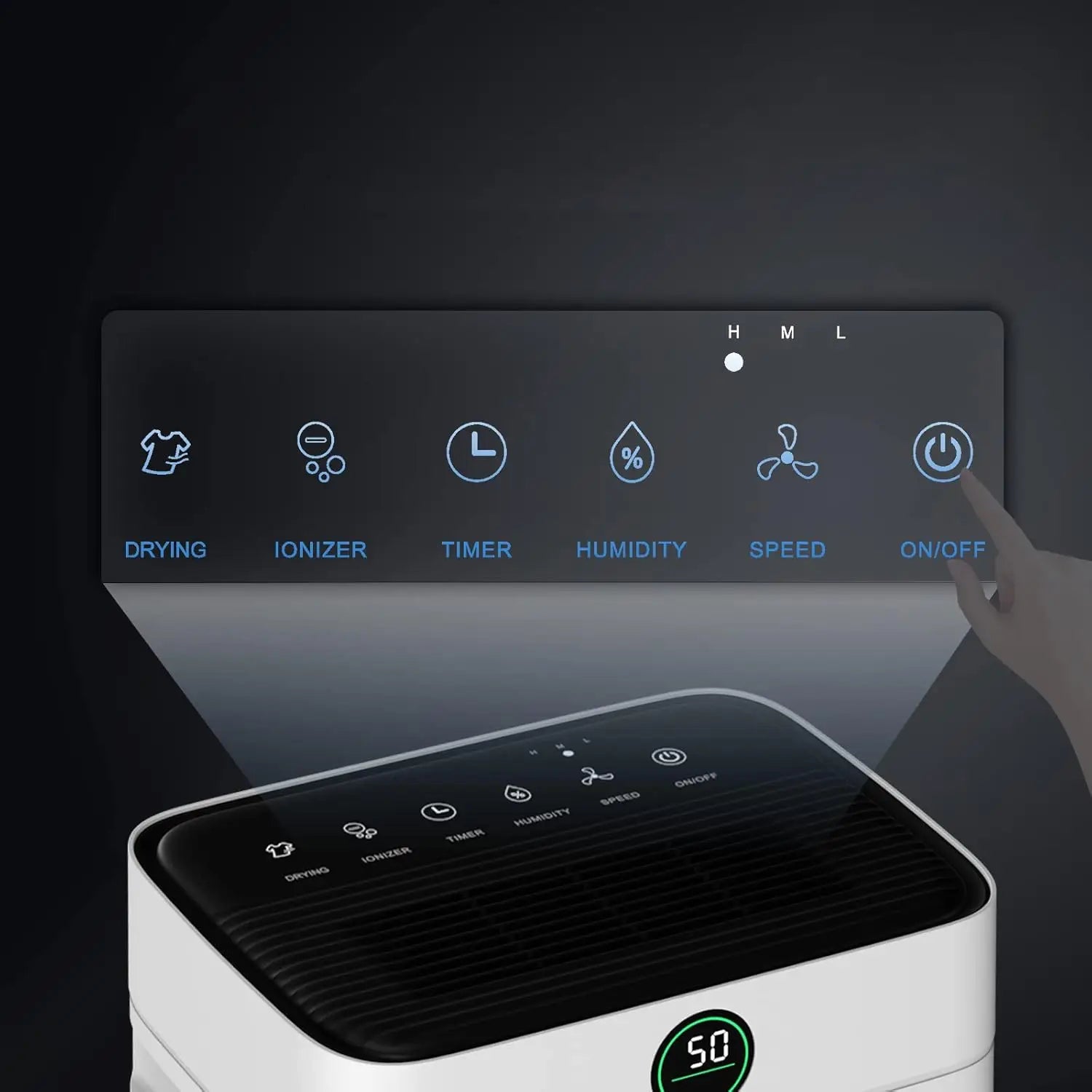 Gardez le contrôle grâce à un affichage digital clair indiquant le taux d’humidité en temps réel.